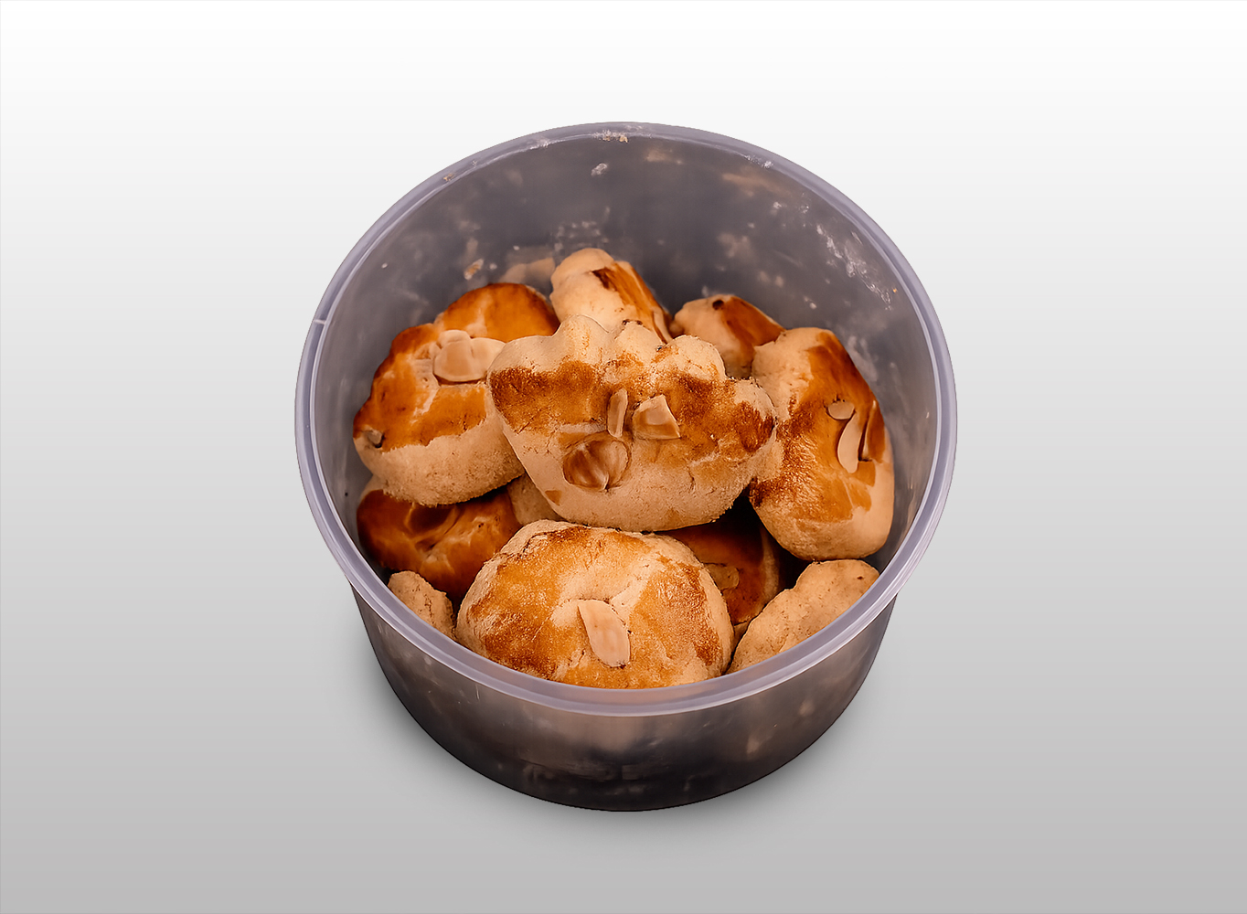 Ingredients: Flour, Baking Powder, Sugar, Egg, Butter, Ghee, Salt, Milk Powder, Sliced Almond